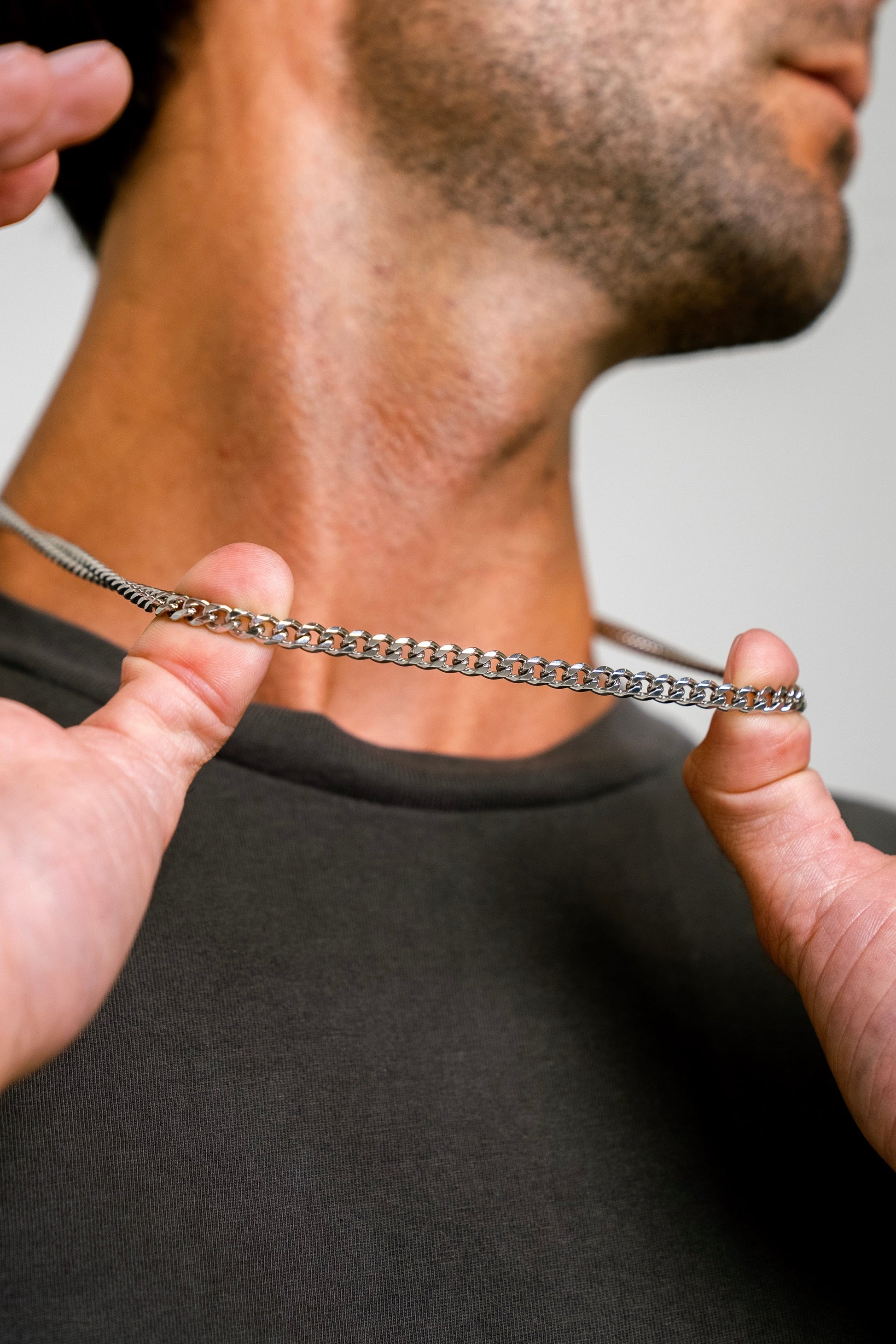 The Cuban 5mm Chain is a timeless accessory that adds a touch of sophistication to any outfit. Crafted from high-quality silver, it's perfect for layering or wearing solo.