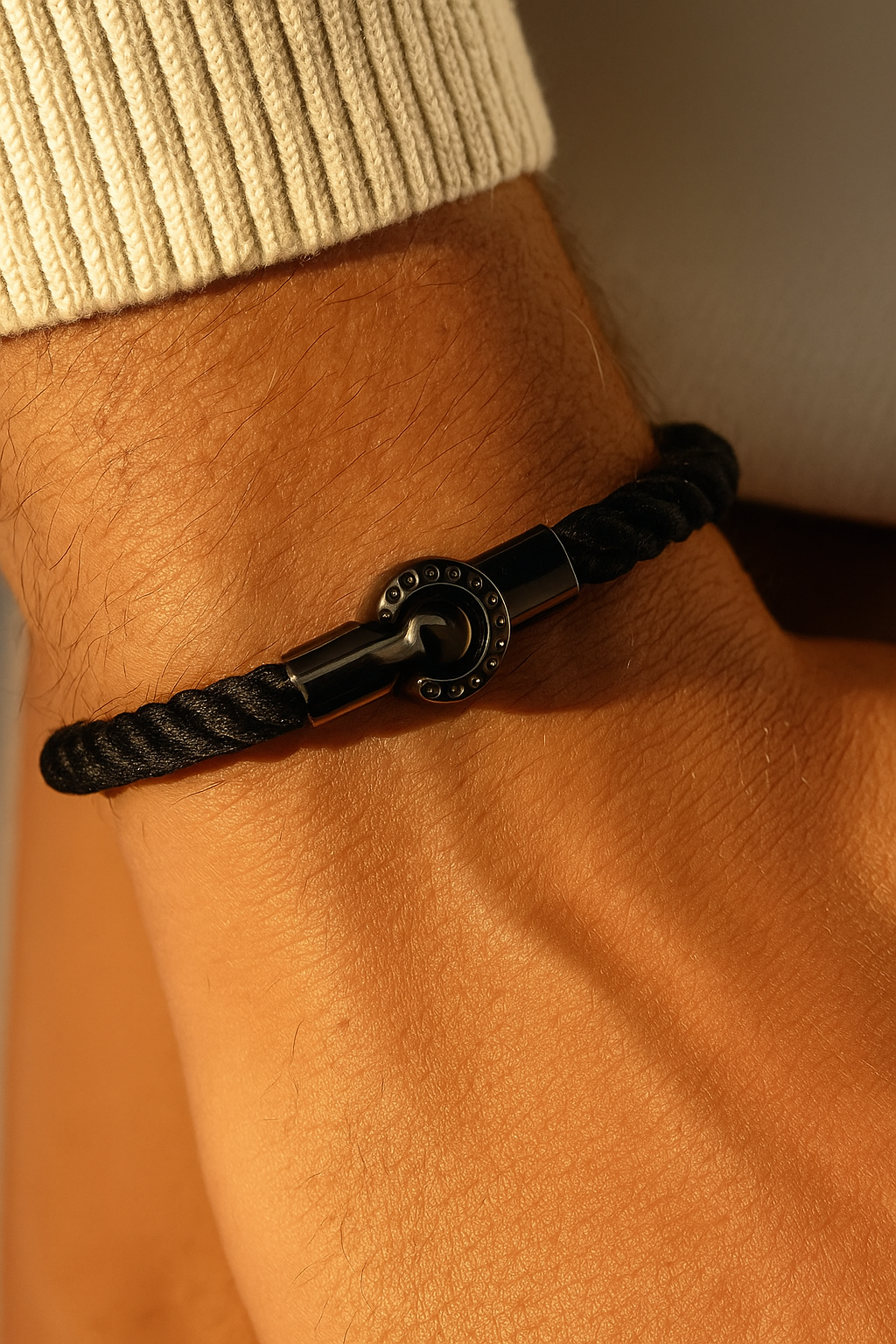 Inspired by the sea and designed for everyday strength, this braided nautical bracelet blends masculine style with meaning. Made from tough nylon rope and finished with a sleek black magnetic clasp, it’s a versatile gift for the modern man.