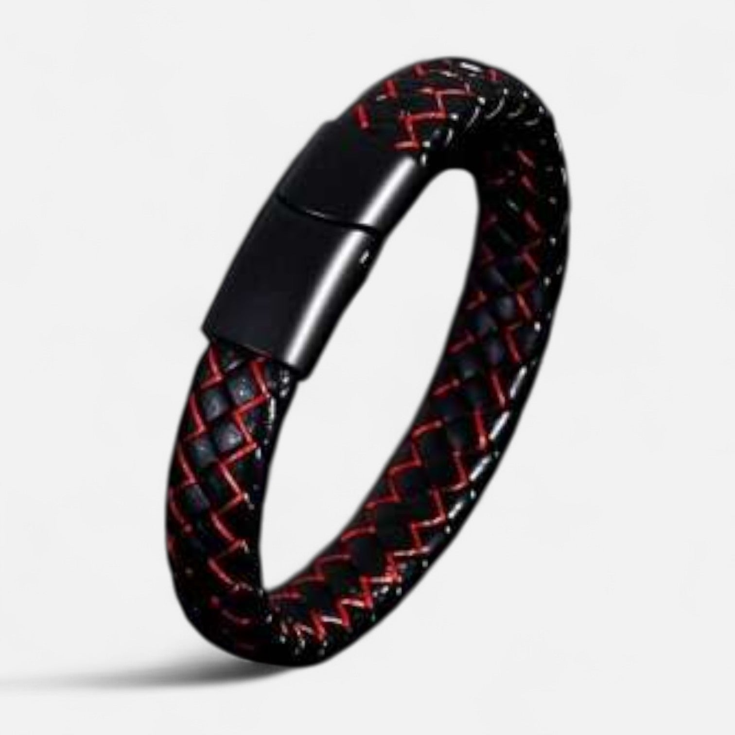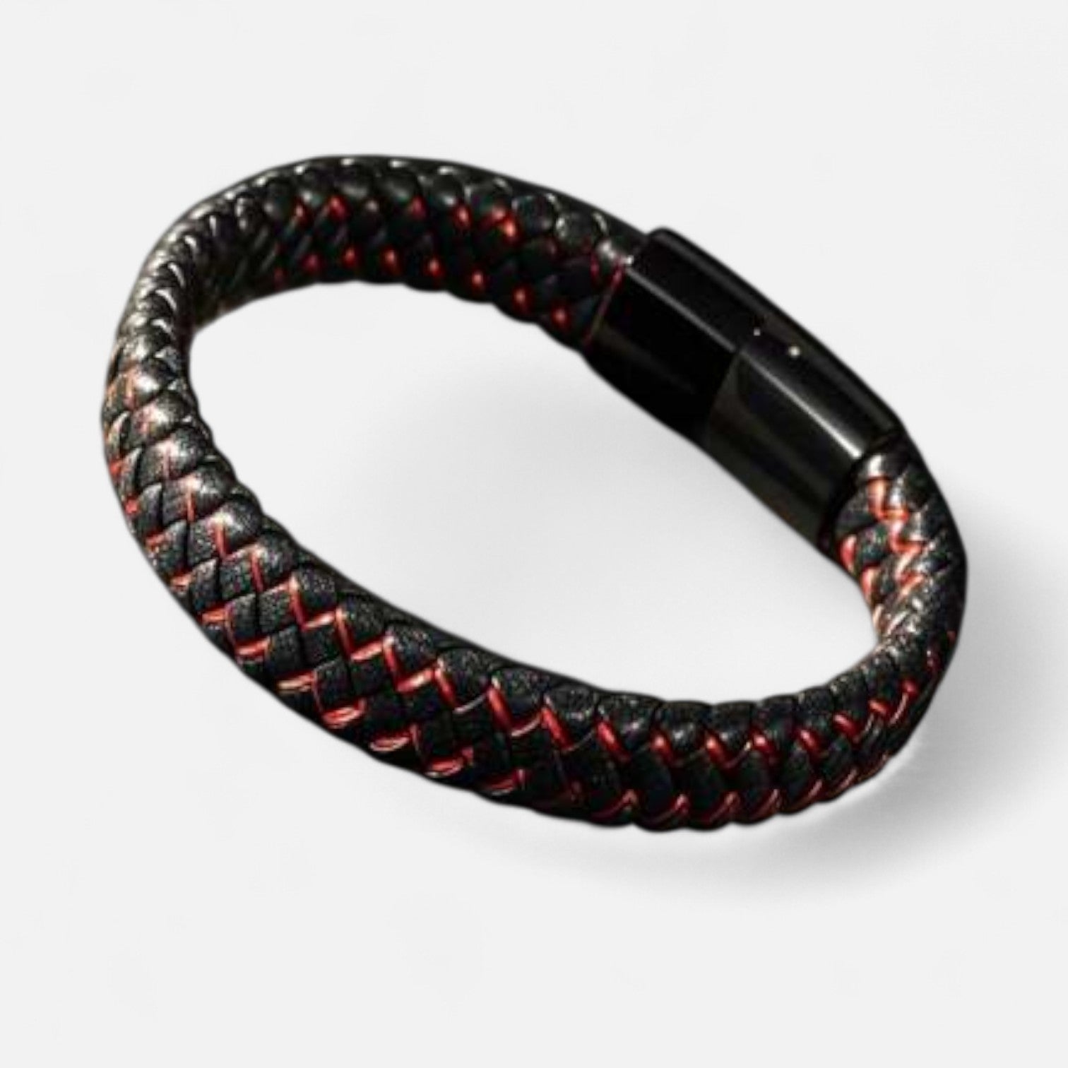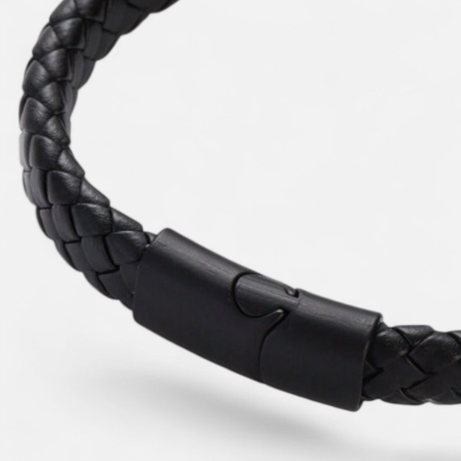 Valcien | Men's Braided Leather Bracelet – Titanium Steel Detail, Rugged Precision