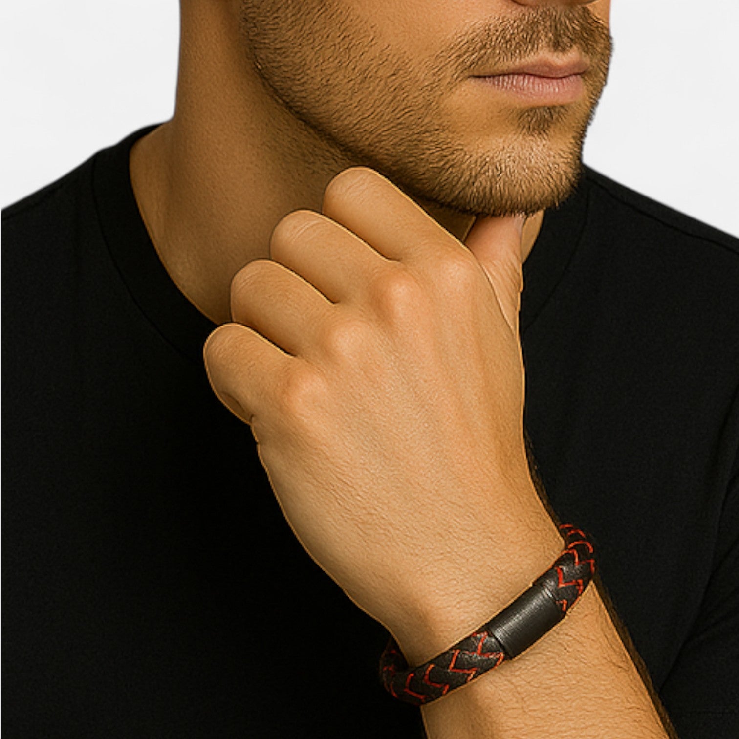 The Valcien Men's Braided Leather Bracelet merges rugged texture with precision hardware. Designed for those who appreciate bold simplicity, it’s a statement piece that elevates your everyday aesthetic with strength and style.