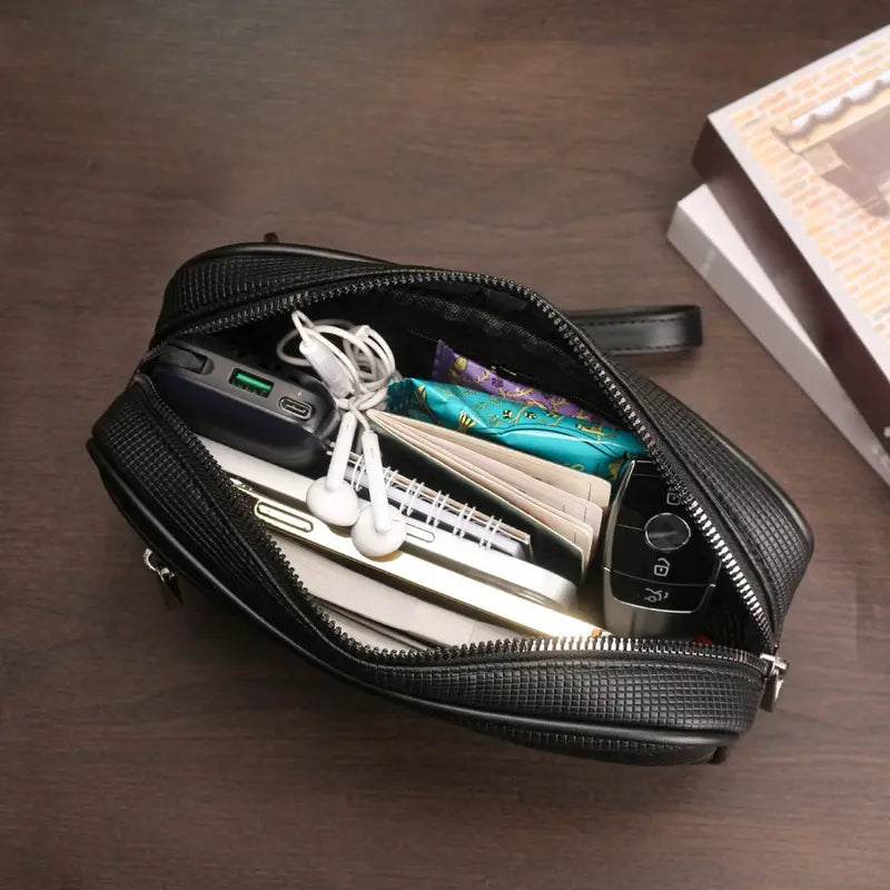 Designed for the modern man on the move, this multifunctional travel clutch combines style and practicality. With its sleek silhouette and generous storage, it's the perfect companion for everyday commuting or travel.