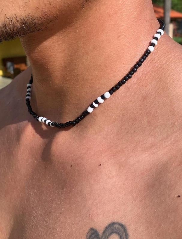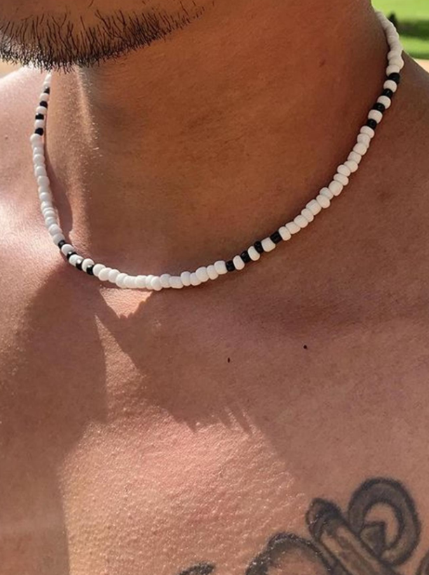 Make a bold yet refined statement with this two-tone beaded necklace, crafted for the modern man who values detail and personal expression. Its glass beads and balanced design bring together casual cool and subtle sophistication.