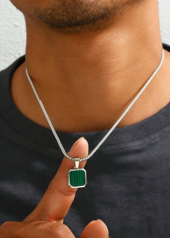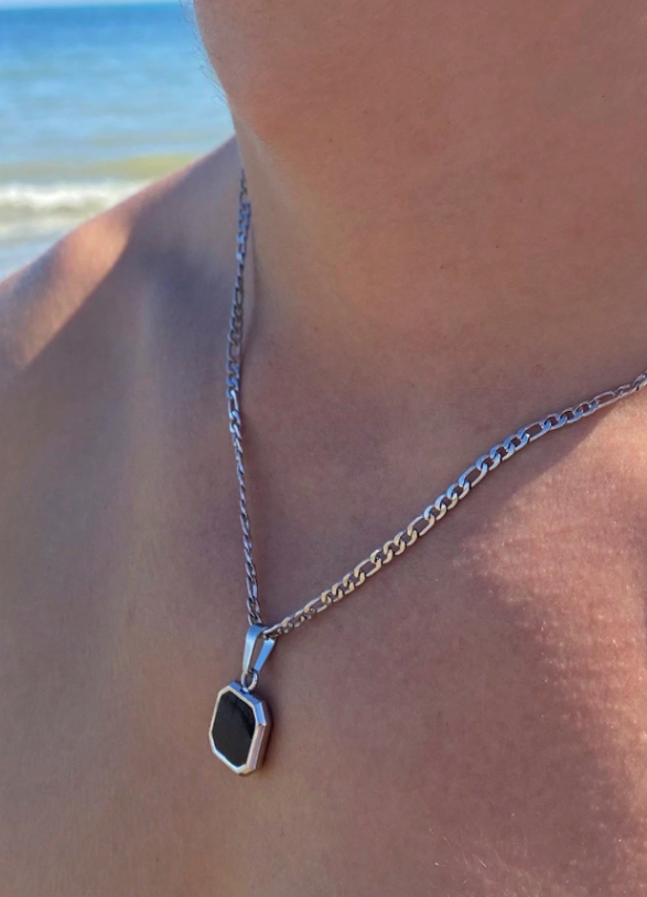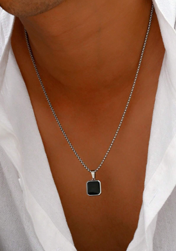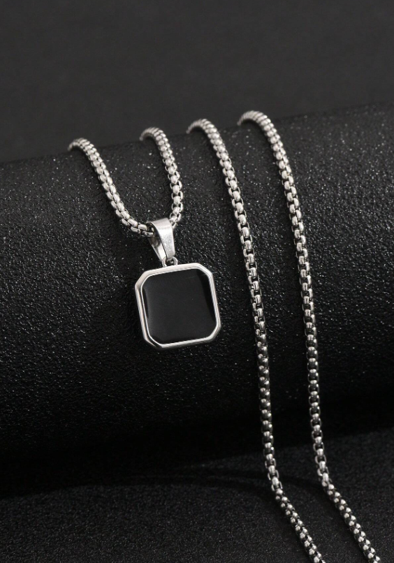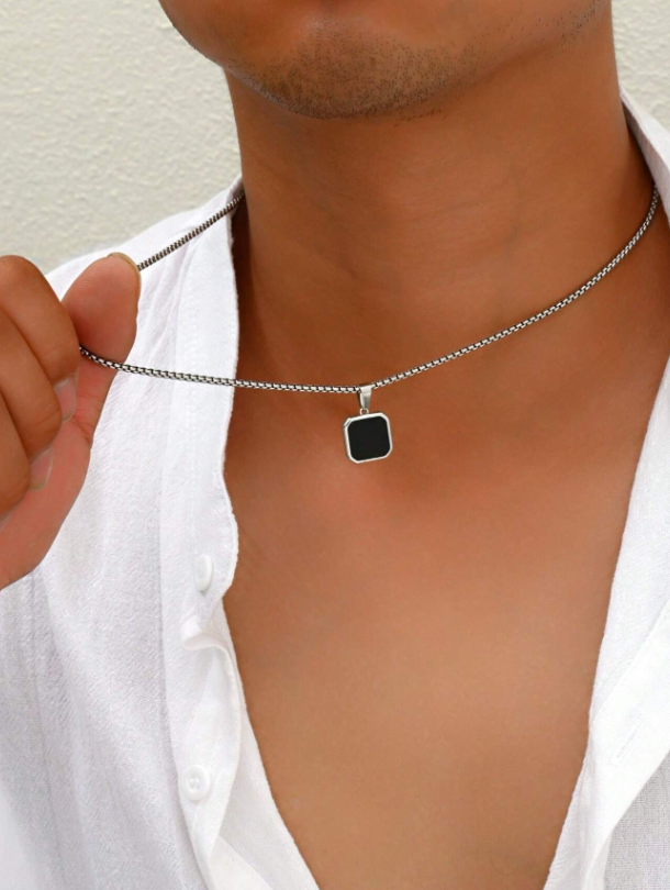 Valcien | Simple Punk Black Painted Pendant Necklace with Stainless Steel Chain – Daily & Business Men’s Accessory